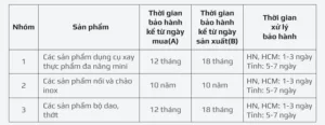 BẢNG 2. THỜI GIAN BẢO HÀNH CÁC SẢN PHẨM NGÀNH GIA DỤNG