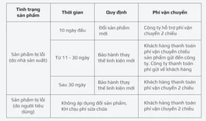 QUY ĐỊNH PHÍ VẬN CHUYỂN SẢN PHẨM BẢO HÀNH, ĐỔI – TRẢ